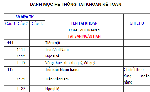 | LOẠI TÀI KHOẢN 1 TÀI SẢN NGẮN HẠN |