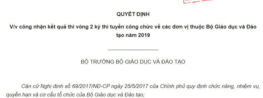 Kết quả thi vòng 2 kỳ thi tuyển công chức Bộ Giáo dục và Đào tạo năm 2019